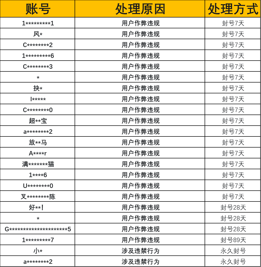 我们一直致力于给广大玩家提供一个公平公正、绿色健康的游戏环境,以保障每一位玩家愉悦的游戏体验。对于利用游戏进行非法盈利、破坏游戏平衡、影响其他用户正常游戏体验等的违规行为,平台都将进行严厉打击,根据情节严重情况予以封号警告、永久封号等处罚。